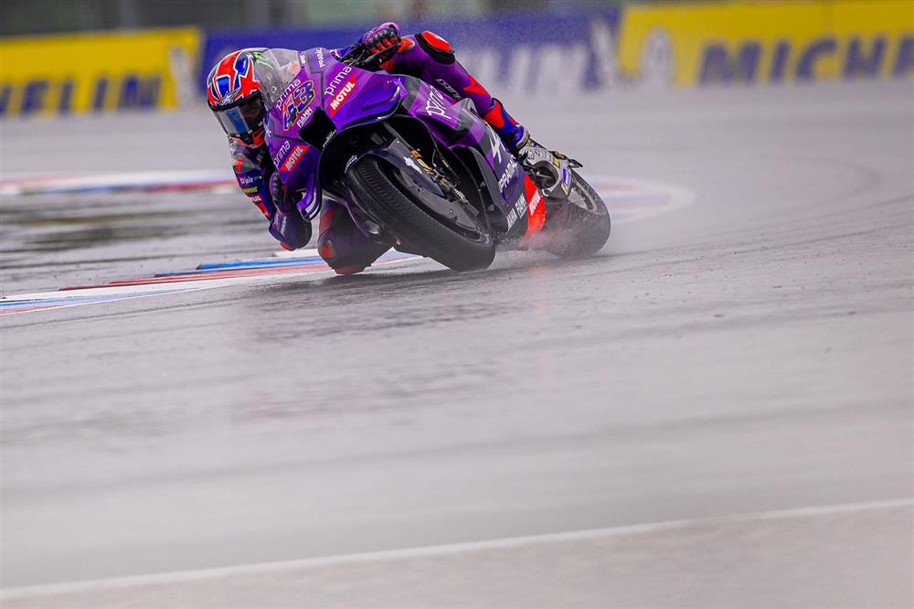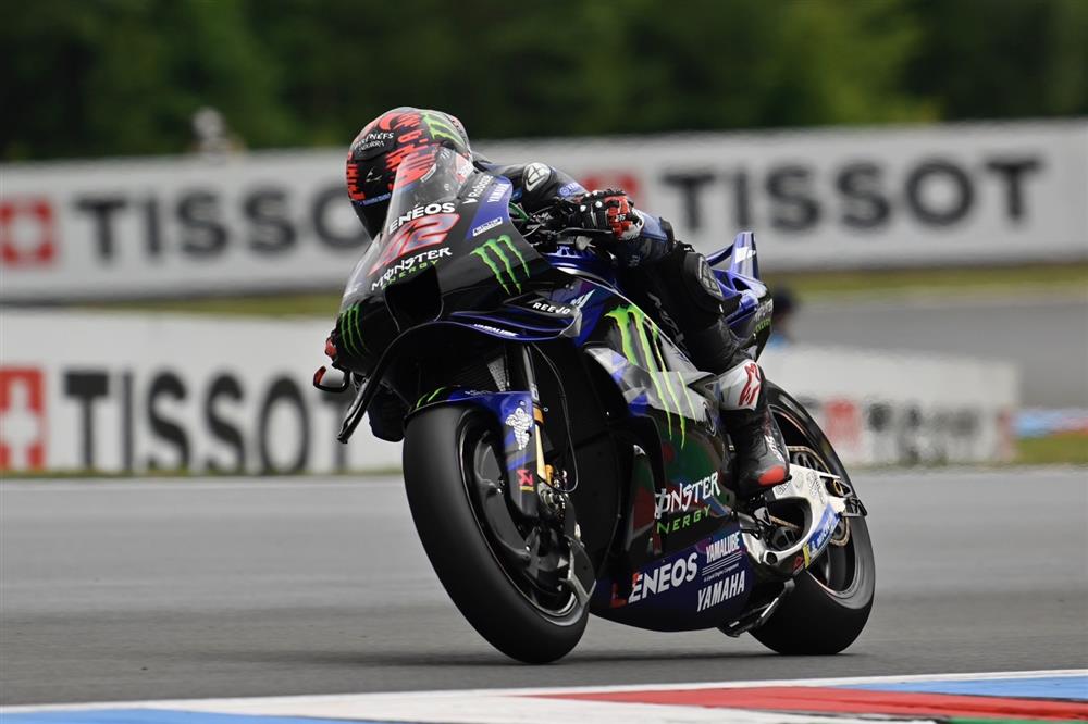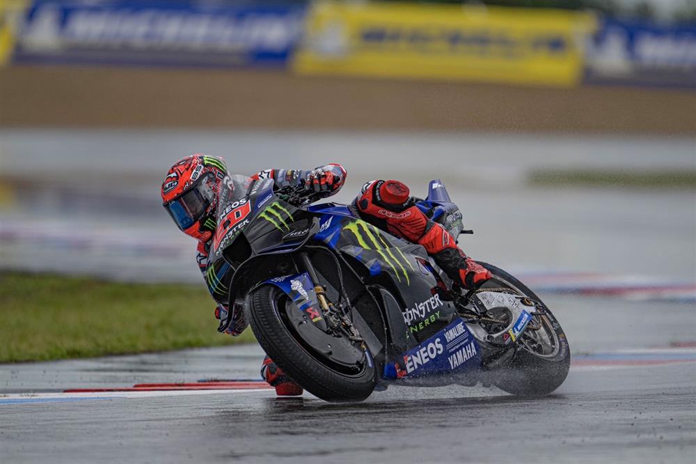 "เอลดิอาโบล" ฟาบิโอ กวาร์ตาราโร ยอดนักบิดเฟรนช์จาก มอนสเตอร์ อีเนอร์จี้ ยามาฮ่า โมโตจีพี รีดความเร็วรถแข่ง YZR-M1 ฝ่าสายฝนรั้งท็อป 3 การซ้อมวันแรกของศึก โมโตจีพี 2025 สนาม 12 เช็ก กรังด์ปรีซ์ พร้อมควง แจ็ค มิลเลอร์ นักบิดออสซี่จาก พรามัค ยามาฮ่า ในอันดับ 6 ผ่านเข้าสู่ Q2 ได้ทั้งคู่ สร้างโอกาสลุ้นโพเดียมสุดสัปดาห์นี้ ที่ เบอร์โน
