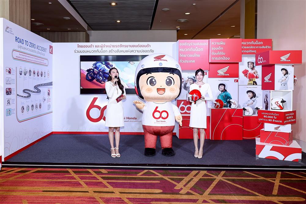 เนื่องในโอกาสพิเศษครบรอบ 60 ปี นี้ ไทยฮอนด้าได้จัดตั้ง “โครงการบริจาคหมวกกันน็อก” จำนวน 60,000 ใบ มูลค่า 60 ล้านบาท จัดขึ้นภายใต้แนวคิด “60 ปี ไทยฮอนด้า ขับขี่ปลอดภัย เพื่อสังคมไทยที่ยั่งยืน” โดยร่วมมือกับหน่วยงานภาครัฐ สถาบันการศึกษา เราจะส่งมอบหมวกกันน็อก 77 จังหวัดทั่วประเทศ พร้อมเดินหน้าเคียงข้างสังคมไทย ด้วยความมุ่งมั่นในการรณรงค์เรื่องความปลอดภัย และสร้างความตระหนักรู้ให้กับคนไทยทุกคน เพื่อร่วมกันขับเคลื่อนสังคมไทยให้ปลอดภัย และก้าวสู่เป้าหมายของการเป็นสังคมที่อุบัติเหตุเป็นศูนย์