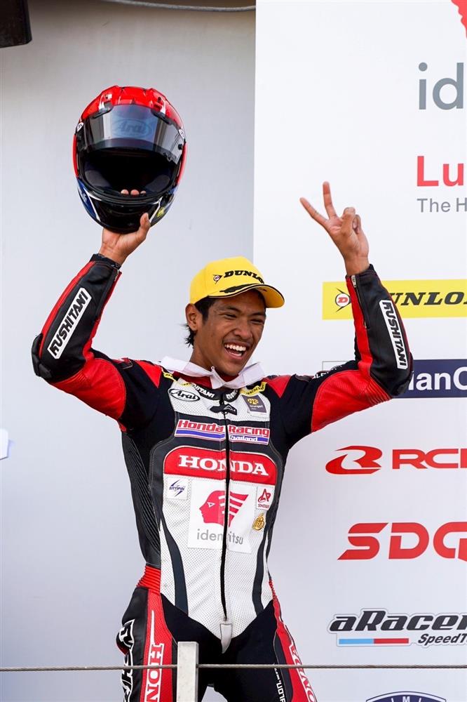 รุ่นซูเปอร์สปอร์ต 600 ซีซี (SS600) เรซที่ 2 “ไฮเปค” กฤษฎา ธนะโชติ เดินหน้าทำผลงานที่ดีขึ้นอีกระดับ ออกสตาร์ตการแข่งขันจากกริดที่ 10 บิด Honda CBR600RR ที่ท็อปฟอร์มอย่างมากดวลความเร็วกับคู่แข่งระดับหัวแถวของเอเชีย ไล่แซงทำอันดับขึ้นมาได้อย่างสะใจกองเชียร์ชาวไทย ถึงประสบการณ์จะเป็นรองเพราะเป็นปีแรกที่ได้ลงแข่งขัน แต่สามารถขึ้นมารั้งอันดับผู้นำในช่วง 3 รอบสุดท้ายและดวลกับคู่แข่งเพื่อลุ้นวินเนอร์ถึงเส้นชัย ก่อนคว้าโพเดียมอันดับที่ 2 มาครอง เป็นโพเดียมแรกที่ “ไฮเปค” คว้ามาครองหลังจากที่ไทยฮอนด้า ผลักดันส่งลงสนามแข่งขันรายการระดับชิงแชมป์เอเชียเป็นปีแรก ในศึก FIM Asia Road Racing Championship 2025 สนามที่ 4 ที่สนามเปอร์ตามิน่า มัลดาลิกา อินเตอร์เนชั่นแนลเซอร์กิต ประเทศอินโดนีเซีย