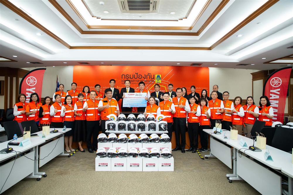 กรมป้องกันและบรรเทาสาธารณภัย (ปภ.) ส่งต่อหมวกนิรภัยขนาดเล็กที่ได้รับมาตรฐาน มอก. จาก บริษัท ไทยยามาฮ่ามอเตอร์ จำกัด จำนวน 100 ใบ ในโอกาสฉลองครบรอบ 60 ปี ที่บริษัทฯ ดำเนินธุรกิจผลิต และจำหน่ายรถจักรยานยนต์คุณภาพระดับโลกในประเทศไทย โดยมอบให้กับกรมส่งเสริมการปกครองท้องถิ่น ในการจัดกิจกรรมส่งเสริมสร้างวัฒนธรรมความปลอดภัยในการสวมหมวกนิรภัย 100 เปอร์เซ็นต์ ซึ่งได้นำไปมอบส่งต่อให้กับเด็กและเยาวชนที่ผู้ปกครองใช้รถจักรยานยนต์ในการรับส่ง บุตร หลาน ที่ศูนย์พัฒนาเด็กเล็ก ที่ขาดแคลน และไม่มีหมวกนิรภัยให้กับบุตรหลาน