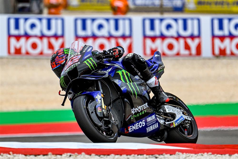 ผลการซ้อมปรากฏว่า ฟาบิโอ กวาร์ตาราโร แชมป์โลกปี 2021 ชาวฝรั่งเศสจาก มอนสเตอร์ อีเนอร์จี้ ยามาฮ่า โมโตจีพี จบการซ้อมวันแรกด้วยอันดับ 13 ด้วยเวลาต่อรอบ 1 นาที 38.598 วินาที ตามหลังผู้นำ 0.624 วินาที ต้องลุ้นในรอบ Q1 แต่มีสัญญาณที่ดีในการยกระดับความเร็ว ส่วนทีมเมทชาวสแปนิชอย่าง อเล็กซ์ รินส์ รั้งอันดับ 18 ตามหลัง 1.096 วินาที