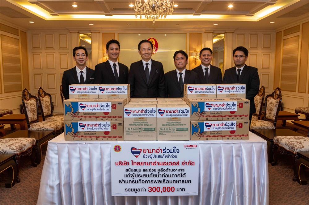 นายพงศธร เอื้อมงคลชัย ประธานกรรมการบริหาร, มร.ฮิเดฮิโกะ ทาคากิ รองประธานกรรมการบริหาร พร้อมด้วยคณะผู้บริหารระดับสูง บริษัท ไทยยามาฮ่ามอเตอร์ จำกัด ได้สนับสนุน และช่วยเหลือด้านอาหารแก่ผู้ประสบภัยน้ำท่วมภาคใต้ รวมมูลค่า 300,000 บาท โดยการมอบความช่วยเหลือในครั้งนี้ได้รับเกียรติจาก พล.อ.อานุภาพ ศิริมณฑล หัวหน้าคณะนายทหารฝ่ายเสนาธิการประจำผู้บังคับบัญชา พล.ท.ชัยรัตน์ ธรรมชาติ หัวหน้าสำนักงาน หัวหน้าคณะฝ่ายเสนาธิการประจำผู้บังคับบัญชา พล.ต.ณัฏฐพล ดิษยบุตร ผู้อำนวยการสำนักจิตวิทยา กรมกิจการพลเรือนทหารบก เป็นผู้รับมอบเพื่อนำไปกระจายความช่วยเหลือแก่ผู้ประสบภัยในพื้นที่ภาคใต้โดยเร่งด่วน