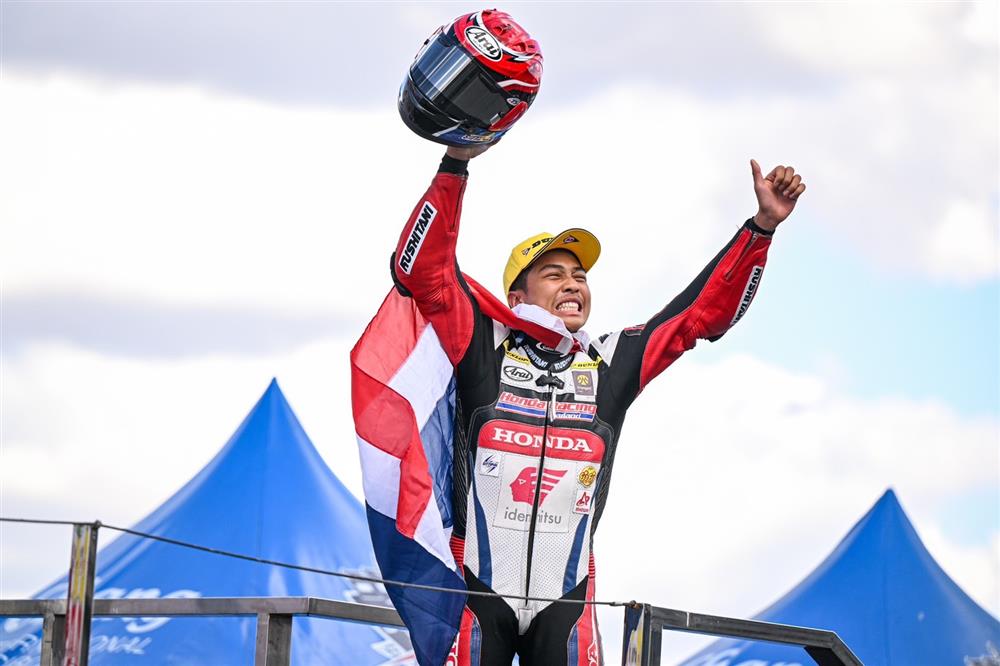 “ฮอนด้า เรซซิ่ง ไทยแลนด์” ประสบความสำเร็จ ส่ง “อุ้ม” นพรุธพงษ์ บุญประเวศ หมายเลข 20 ลุยบิด Honda CBR250RR ใน เอเชีย โปรดักชั่น 250 (AP250) ในเรซที่ 2 สตาร์ตกริดที่ 5 ไล่บี้คู่แข่งแบบไม่มียั้ง สามารถคว้าโพเดียมอันดับ ที่ 2 มาครองได้อย่างสุดมันส์ ในฐานะนักแข่งไวลด์การ์ดที่ลงแข่งขันรายการนี้เป็นครั้งแรกในฤดูกาล สร้างปรากฏการณ์จัดหนักทำดับเบิ้ลโพเดียม 2 เรซติดต่อกัน แบบไร้ข้อกังหา พร้อมทีมเมท "เฟอร์” ปัญจรุจน์ จิตวิรุฬห์ฉัตร หมายเลข 12 สตาร์ตกริดที่ 21 เข้าเส้นชัยในอันดับที่ 5 แซงเดือดนักแข่งระดับหัวกระทิของเอเชีย ตอกย้ำสายเลือดนักแข่งตัวจริงของทีมฮอนด้าอย่างเต็มภาคภูมิ!