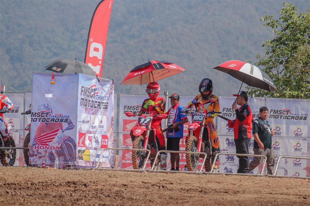 การแข่งขันรายการ FMSCT Thailand Motocross สนาม 2 นักบิดระดับชั้นนำของประเทศในรุ่น Premier MX-1 พบความท้าทายกับคาแร็กเตอร์ของสนาม มีเนินสูงและต้องมุดลงโค้งที่ลึก วัดความแข็งแกร่งของนักบิดและสมรรถนะของรถแข่ง โดยการแข่งขันเริ่มต้นขึ้นเป็นยอดนักบิดฮอนด้า “แซงค์” กฤษฎา จำรูญจารีต ทะยานรถแข่ง Honda CRF450R หมายเลข 17 จากทีม Honda17 Kitsada Dirtshop Dunlop Motul บดกับคู่แข่งตั้งแต่โค้งแรกก่อนทะยานคว้าโฮลด์ช็อตไปครองได้สำเร็จ และพยายามฉีกความเร็วออกมาในตำแหน่งผู้นำช่วงต้นเกม