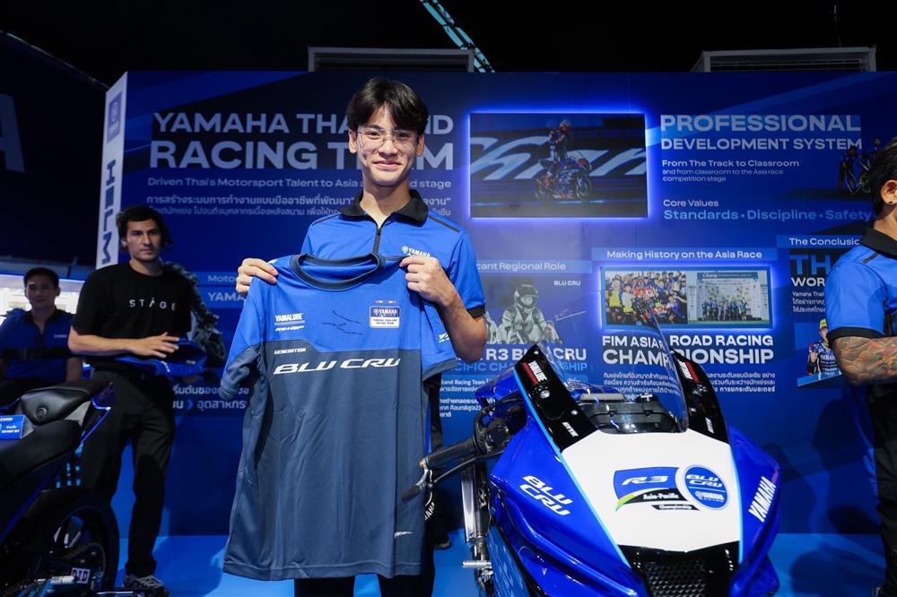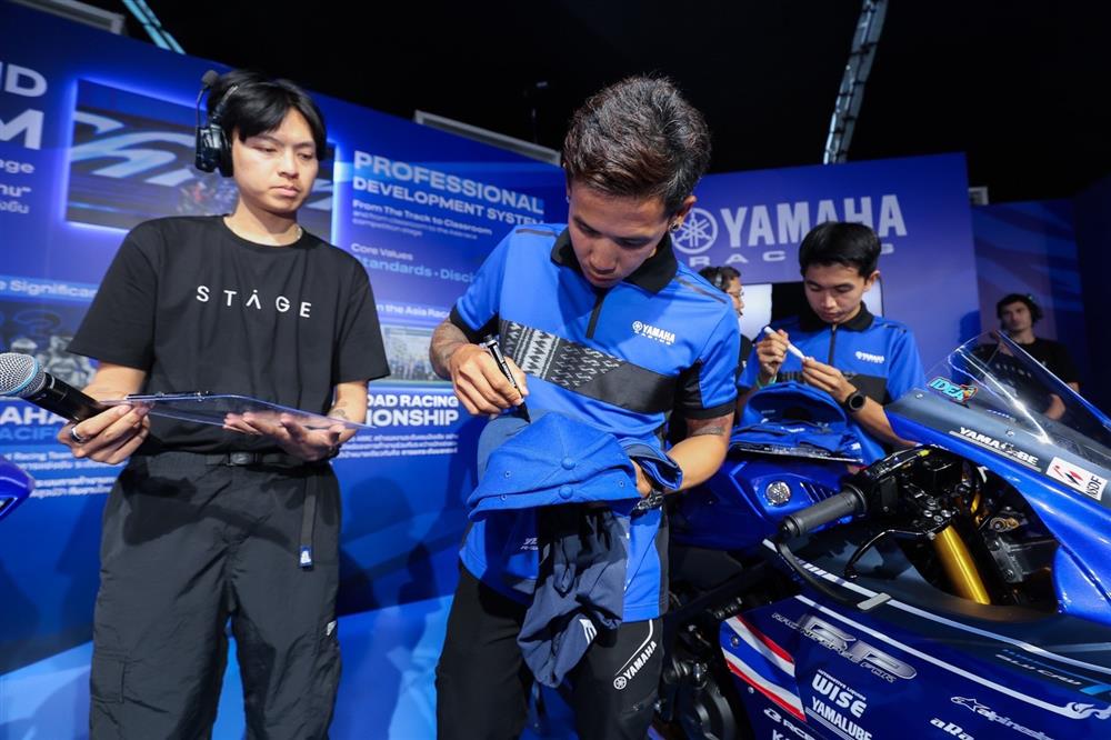 นายอุกฤษณ์ ภาควิวรรธ รองผู้จัดการใหญ่ด้านวางแผนการค้าและการตลาด และนายจิรภัทร สายเพชร ผู้จัดการทั่วไปฝ่ายสื่อสารการตลาดและสนับสนุนการตลาด บริษัท ไทยยามาฮ่ามอเตอร์ จำกัด ร่วมถ่ายภาพพร้อมมอบของที่ระลึกให้กับ 3 นักแข่งไทยภายใต้สังกัด YAMAHA THAILAND RACING TEAM นำโดย “ตี” อนุภาพ ซามูล นักแข่งรุ่น SuperSports 600, “ไอเดีย” กฤตภัทร เขื่อนคำ นักแข่งรุ่น Asia Production 250 จากศึก Asia Road Racing Championship และ “อิงค์” อัศวนันท์ นักแข่งดาวรุ่งจากรายการ YAMAHA R3 BLU CRU Asia-Pacific ในกิจกรรมสุดเอ็กซ์คลูซีฟ Meet and Greet 3 นักแข่งไทย ซึ่งได้รับการตอบรับจากแฟนมอเตอร์สปอร์ตชาวไทยอย่างอบอุ่น