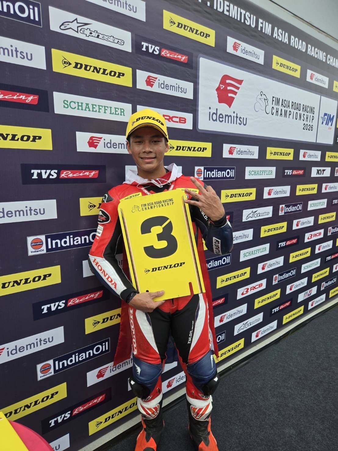 ดาวรุ่งนักบิด “ฮอนด้า เรซซิ่ง ไทยแลนด์” "มิกซ์" ธนัช ละอองปลิว บิด Honda CBR600RR ประเดิมโพเดียมให้กับแฟนความเร็วชาวไทยได้ทันทีตั้งแต่การแข่งขันสนามแรกระเบิดผลงานในต่างแดน ศึก FIM Asia Road Racing Championship 2026 สนามที่ 1 คลาส ซูเปอร์สปอร์ต 600 ซีซี (SS600) เรซที่ 2 สนามเซปัง อินเตอร์เนชั่นแนลเซอร์กิต ประเทศมาเลเซีย